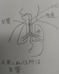 食道を通過しないで 間違って 気管(きかん) に 入って起こる 症状です。