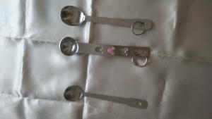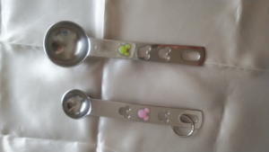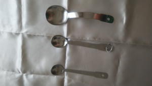 これは、出かけた思い出に買ったカラフルな計量スプーン 上が、15cc 下が、5cc