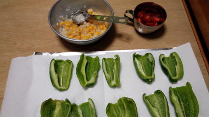 下 オーブンに入れる前のピーマンカップ ![]()