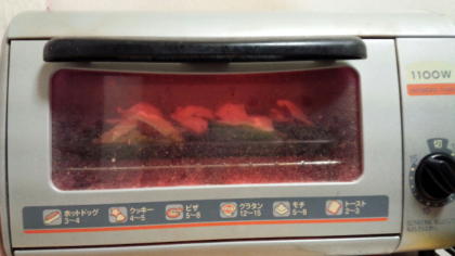 D オーブントースターで10分ほど焼きます。