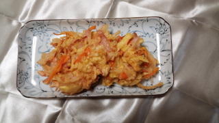 かきあげの生地の中に軽く味をつけているので、何もつけなくてもおいしく食べることができます。