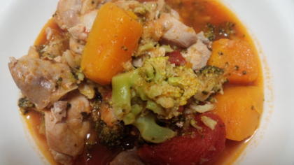 D Cのいろが変わってきたら、かぼちゃ以外の野菜を入れて軽く炒めて、